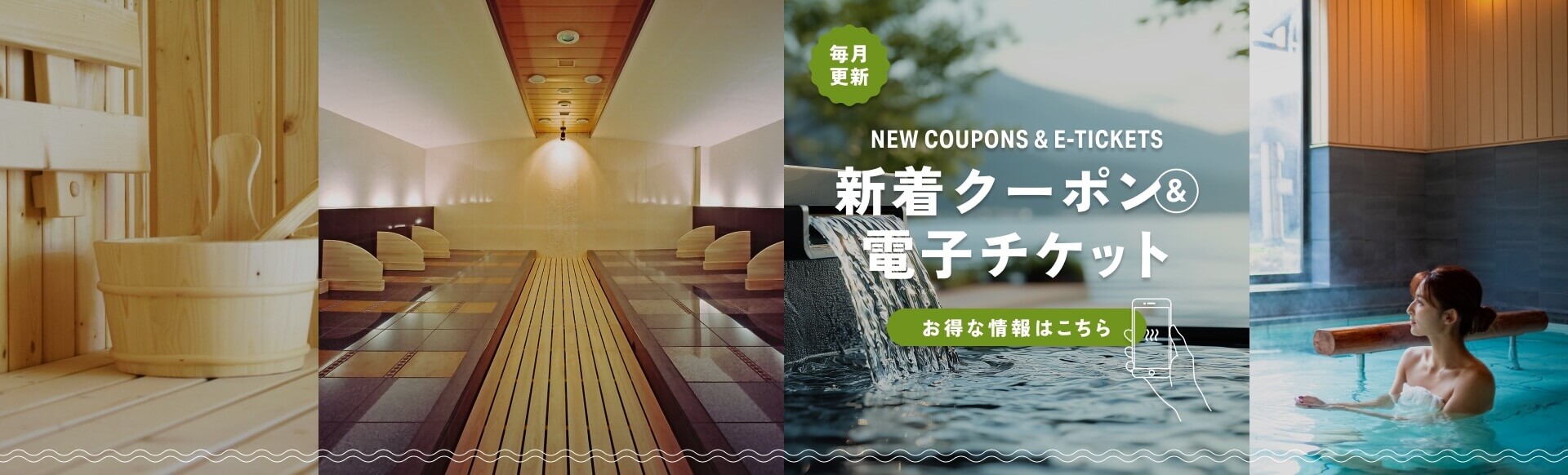 サウナ、銭湯の割引クーポン、口コミが満載