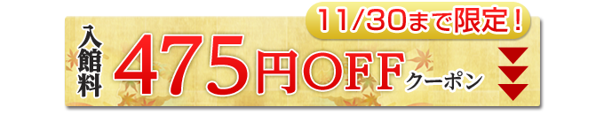 大人:入館料475円引きクーポン!(小人は平日200円引き)