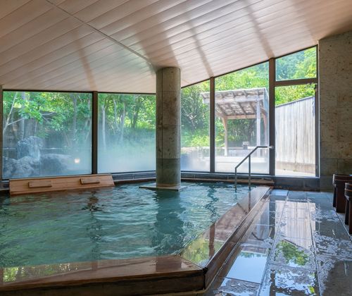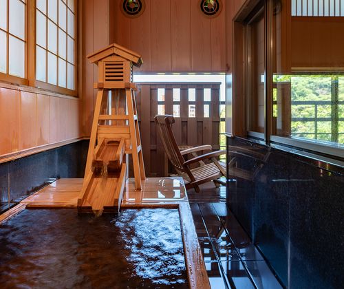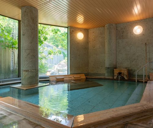伊豆青石を贅沢に使った屋内大浴場で、自家源泉より湧き出たお湯がかけ流しでお楽しみいただけます。