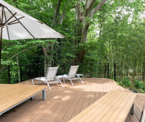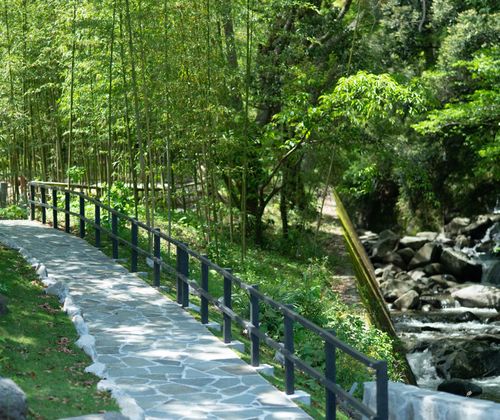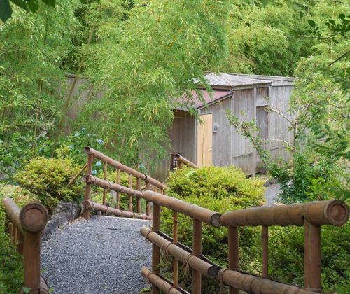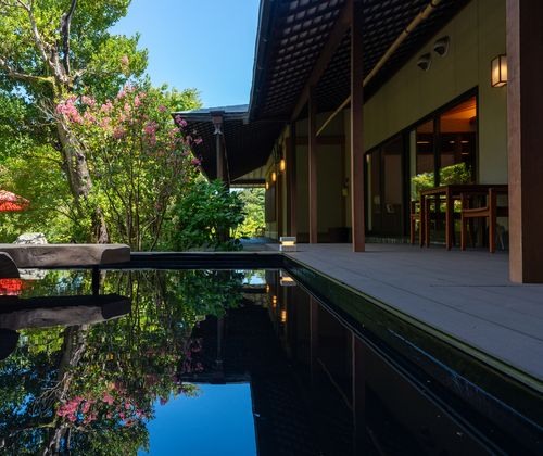 和風庭園には水鏡(みかがみ)テラスが、竹林庭園にはこもれびテラスがあり、広がる自然に囲まれて休憩もできます。