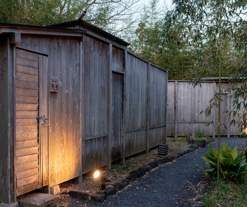 男女の大浴場には、屋内風呂と、露天風呂、個人用の桶風呂を用意しています。露天風呂は伊豆青石を贅沢に使っており、周辺の里山の四季折々の風景を楽しんでいただける開放的な造りとなっております。