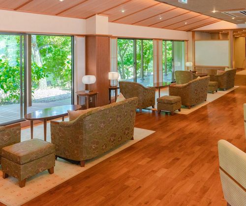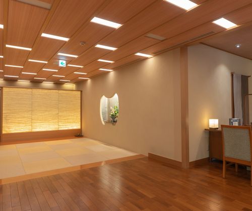 館内には「和風庭園 葉ごろも」と「竹林庭園 光だまり」があり、園内を散歩して静かなひと時をお過ごしいただけます。