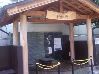 脱衣所に戻ってきて、もう一方の内湯に行きます。こちらは主浴槽、座~寝浴、檜風呂、スチームサウナと洗い場。あと飲泉場もありました。湯は循環で消毒臭が感じられます。露天には樽風呂と岩風呂、それから釜風呂もありました。伊賀の地酒のディスプレイなんかもありまして、樽風呂に入りつつ一升瓶を眺める・・・飲みたくなってきますね。
