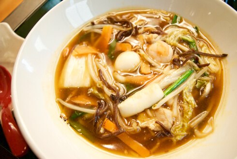 野菜と海鮮たっぷりな「広東麺」は男女問わず大人気! あんかけのとろみがたまりません。また酸味も絶妙で、いくらでも入ってしまいそうです