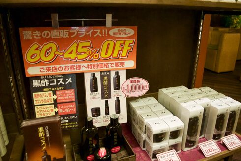 脱衣所にもあった「アロマ黒酢コスメ」は特別価格でご提供