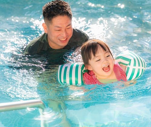 ちょっとしたプールもあり、スタッフさんがブロワーで水飛沫をあげて子どもたちと遊んでくれたりしていて良い施設だな〜と思いました。