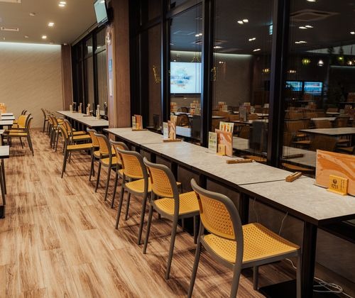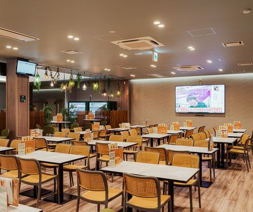 サウナやお風呂を楽しんだら、レストランで食事。明るい雰囲気レストランでは、サウナ飯の石焼き、「石焼き麻婆炒飯」「石焼きピビンパ」「石焼きロウリュカレー」「石焼きベトコンラーメン」「石焼き赤閻魔ラーメン」があります。