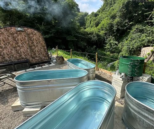 11月にBBQセットプラン付きで午後半日グループで利用しました。利用したのはテントサウナのプランで、薪ストーブと常時水蒸気が発生するスチーマーで室内は超高温でした。薪入れなど火の管理はスタッフの方が対応してくれます。目の前の水風呂は天然水掛け流しで、とても気持ち良かったです。渓流に置いてあるチェアで紅葉の中で外気浴も楽しめました。サウナ後に食べた常陸牛は最高でした。