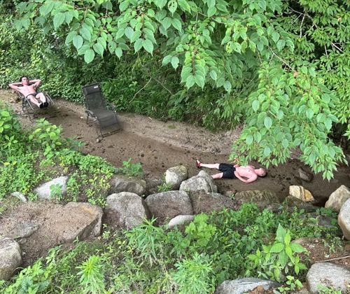 足元がひんやり納涼される渓流の休憩椅子は未知の体験(秋冬の気温が低い時期は、足が水につかないよう足置きをご用意しております)。せせらぎと羽釜とスチーマーの三重奏に包まれ蒸される、これまで体感したことがないであろうサウナ体験をご提供します。