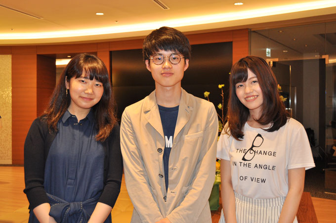 今回インタビューしたのはサークル結成時から行動を共にする、左から佐々木奈乃子さん(教養学部2年)、比護祐介さん(OKR代表、教養学部2年)、池田春花さん(教養学部2年)の3名。