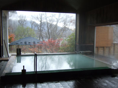 温初めて入った時は、ぬるぬる~っと体にまとわりついてくる感覚にびっくりしました。出た後もずっと温まったままです。確かに浴衣は着てられない! 完全予約制、食事とセット(3コース程ある)で、料亭に来ているような雰囲気です。