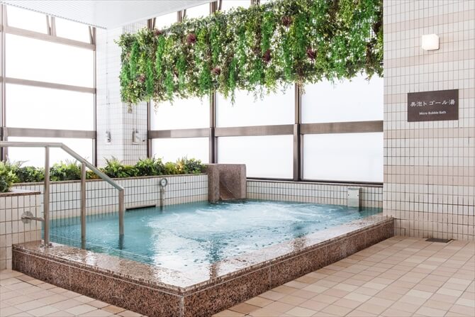 繊細な泡が全身を包み込む信楽板を使用したバブルバスの「美泡トゴール湯」。