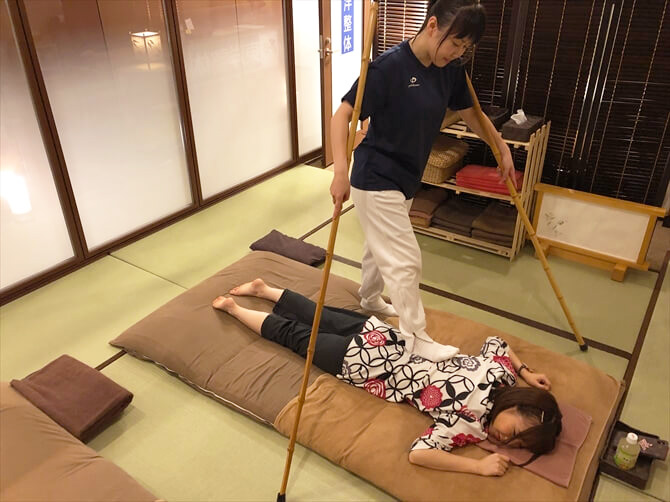 なんと!竹の棒をもって、足でマッサージをしてくれるという初めての体験!