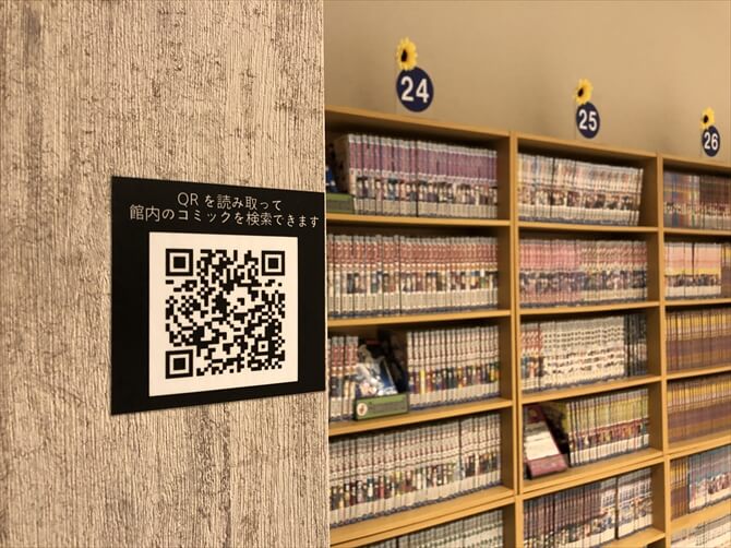 たくさんありすぎて探すのが大変そうですが、このQRコードを読み取れば読みたい漫画が検索できるという素晴らしいシステムなんです!