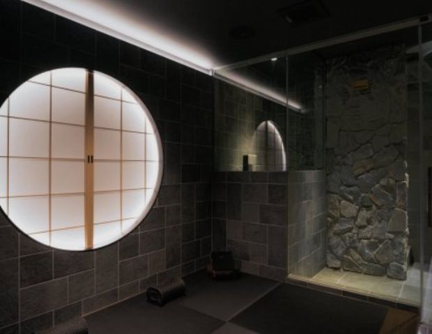 男女それぞれの浴室にあるフィンランド式サウナはオートロウリュウ装置を完備。30分に一度、自動で熱したサウナストーンに水をかけて水蒸気を発生させ、発汗を促します。