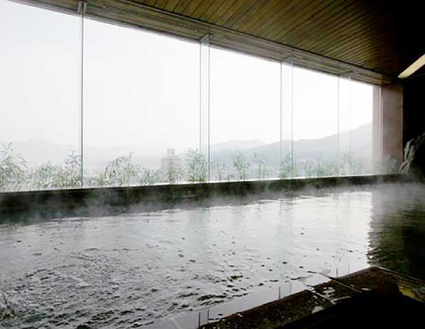 地上9階の空中露天風呂は嬉野温泉一の高さを誇り、嬉野の街並みを見渡すことができます。また地下大浴場は浅い造りになっていて半身浴や寝湯を楽しむこともできますよ。