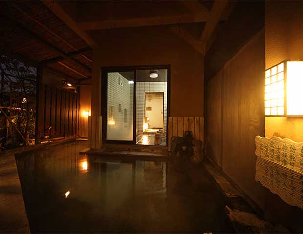 源泉かけ流しのお湯が楽しめるのはもちろん、流れている音楽にもこだわりがあり、大村屋のために作曲したアンビエント音楽が流れています。趣の異なる4つの貸切風呂もあるので、プライベート空間を満喫したい人にもおすすめです。