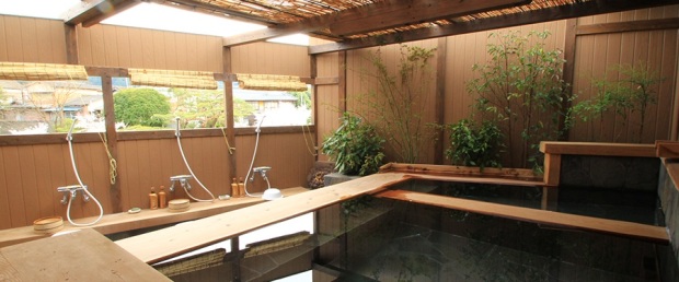「和多屋別荘」は、天然御影石と檜を用いて設計された大浴場「御影殿」と、和の趣が漂う庭園の中で大岩を積み重ねた「浮世風呂」の2種類があります。