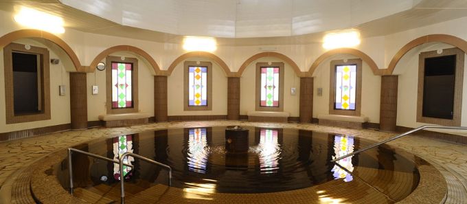 メインの大浴場は、施設の名称にも関わりのあるローマ風の円形大浴槽が印象的。浴槽の底には玉石が敷いてあり、足裏が気持ちいいのもまさに“ツボ”です。