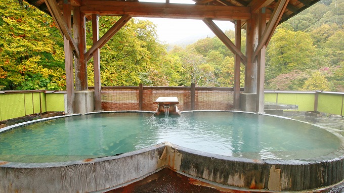 深い渓谷に悠然と佇む露天風呂
