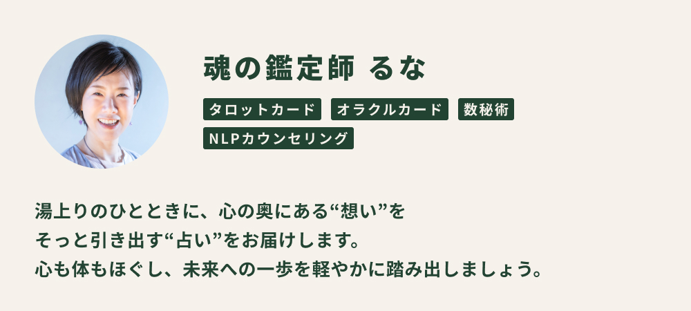 温泉で体をほぐしたあとに、占いで気持ちもすっきり軽くなって帰ってもらえたら──。