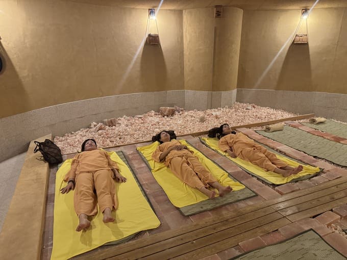 岩盤浴で瞑想しながら占いの振り返り。「家族の時間をもっと大事にしよう」「結婚に向けて話してみよう」など考えを整理する場にもなり、自分と向き合うひとときになりました。