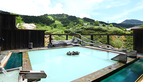 提供されているお湯は、嘉祥元年(848年)に慈覚大師によって発見されたと伝えられている古湯で、身体の芯から温まり、また美肌効果も高いため「美人の湯」と評判。