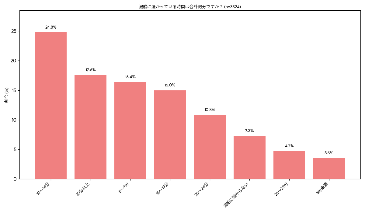 アンケートから浮かび上がったのは、「ほぼ毎日入る × 10分前後でしっかり温まる」という現代型の入浴スタイル。