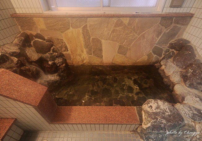 また、湯使いとしては循環装置を使用していますが、浴槽水の毛髪などを除去するためのヘアキャッチャーが目的。湯口からはキッチリと自家源泉が投入※1※2されており、天然温泉ならではの湯の個性をしっかり感じ取ることができました。