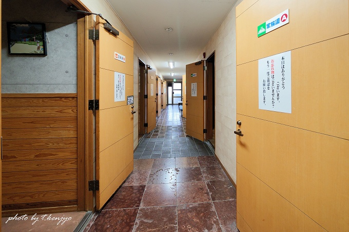 家族湯エリア。廊下の両脇に家族湯があります。