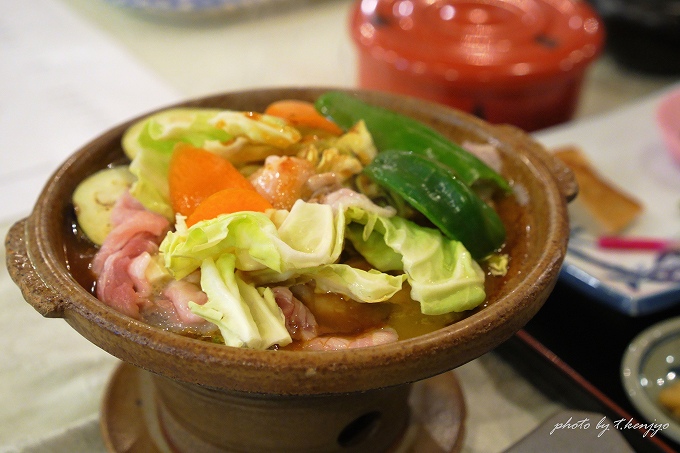 胡椒がピリッと効いた辛口の豚鍋は、白いご飯が進みます。