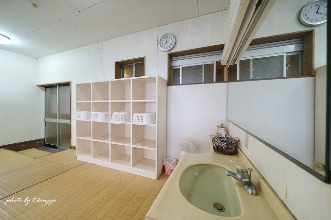 脱衣室は、洗面台と脱衣棚があるだけのシンプルなもの。ドライヤーは設置されているので、髪を洗っても乾かせます。なお鍵付きロッカーは無いので、貴重品は自らきちんと管理する・フロントに預ける、などの対策が必要です。