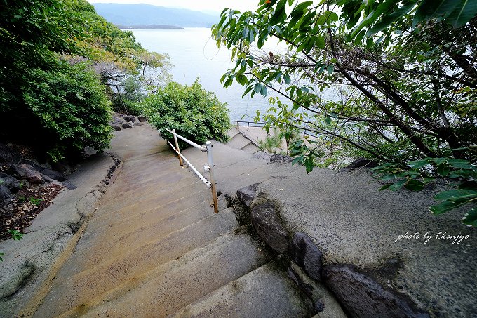 混浴露天風呂は海のすぐ脇にあるために、ホテルから長い屋外階段を80段ほどひたすら降りて行きます。手すりなどにつかまりながら、焦らずゆっくりと進みましょう。