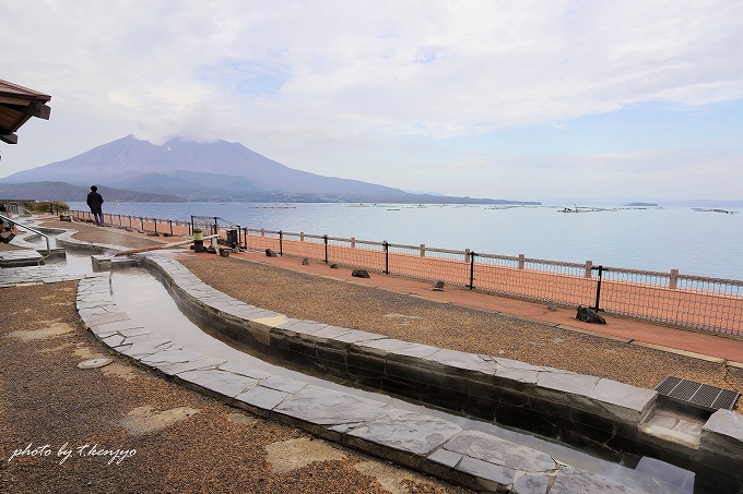 道の駅たるみずの足湯(大隅半島側)から臨む「桜島」