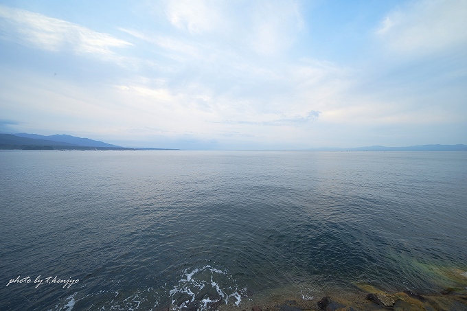 露天風呂から臨む錦江湾。画像左側の陸地が大隅半島、右側が薩摩半島です。