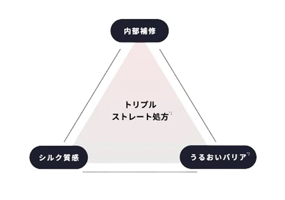 髪の内部構造に着目!世界初ストレートシルク成分*1を独自配合したトリプルストレート処方*