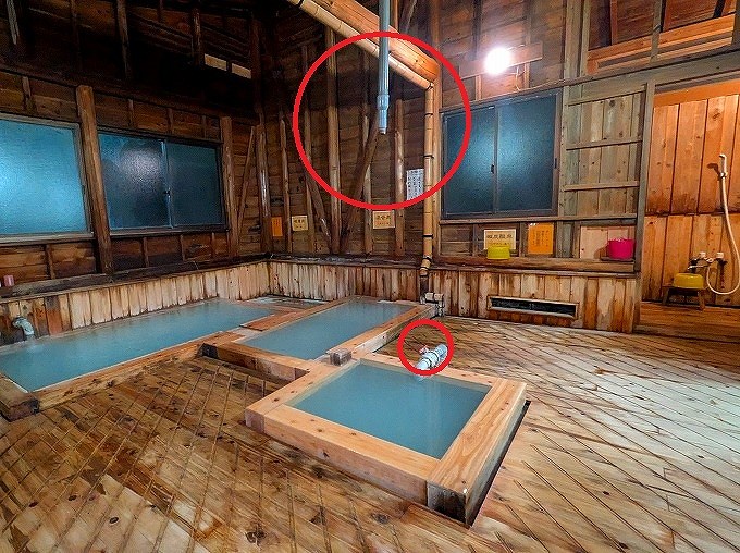 そして、あとからわかったのですが、このパイプから温泉が出て打たせ湯としても楽しむことができたんですね。赤い栓をひねると上から温泉が出てきたようです。こちらも次回の課題となりました。