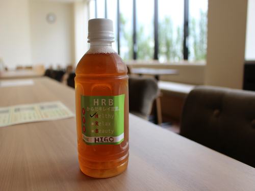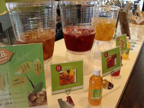 カフェでいただける、人気のハーブティー3種。グラスではなく、ペットボトルに注いでくれるので、岩盤浴やエステなどにも持っていけます。