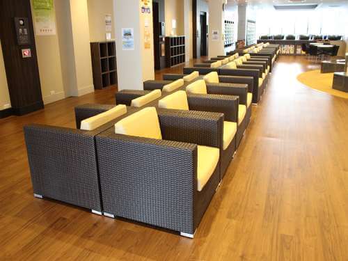 岩盤浴の前にはゆったり休める椅子がたくさん