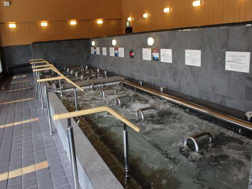 シルク風呂には小さな気泡が大量に含まれているので、それらが破裂する際に出るマイナスイオンによるリラックス効果が期待できます。シルク風呂の一角には電気風呂もありました。